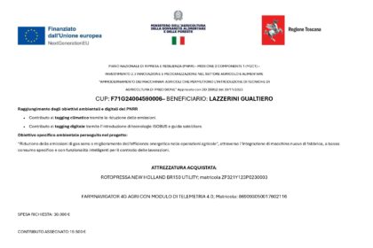 Ammodernamento dei macchinari agricoli che permettono l’introduzione di tecniche di agricoltura di precisione – LAZZERINI GUALTIERO – CUP: F71G24004590006