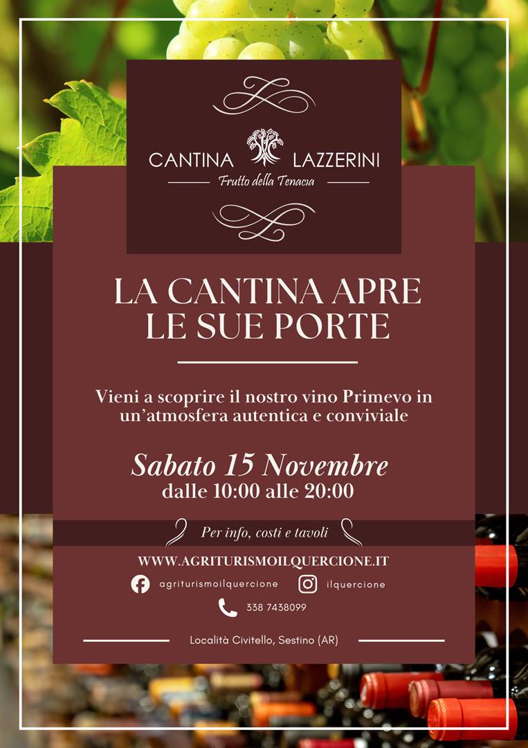 La Cantina Lazzarini è entusiasta di aprirvi le sue porte per un evento speciale dedicato alla scoperta dei nostri vini, immersi in un’atmosfera autentica e conviviale. Un’occasione imperdibile per conoscere da vicino il frutto del nostro lavoro e la passione che mettiamo in ogni bottiglia.